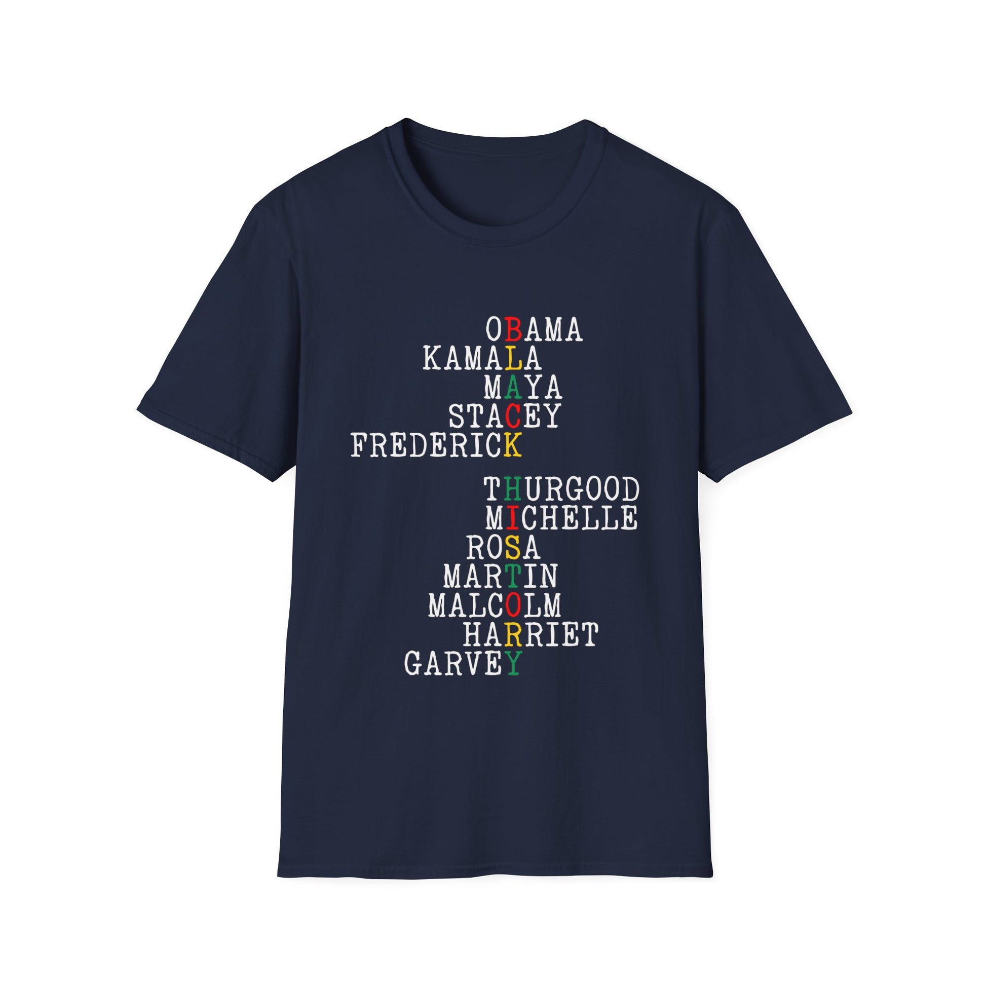 Each letter of “BLACK HISTORY” glows in Pan-African colors and anchors a column of names—leaders, creators and freedom fighters who shaped the story. Clean type, bold contrast, classroom-ready and street-smart at once.