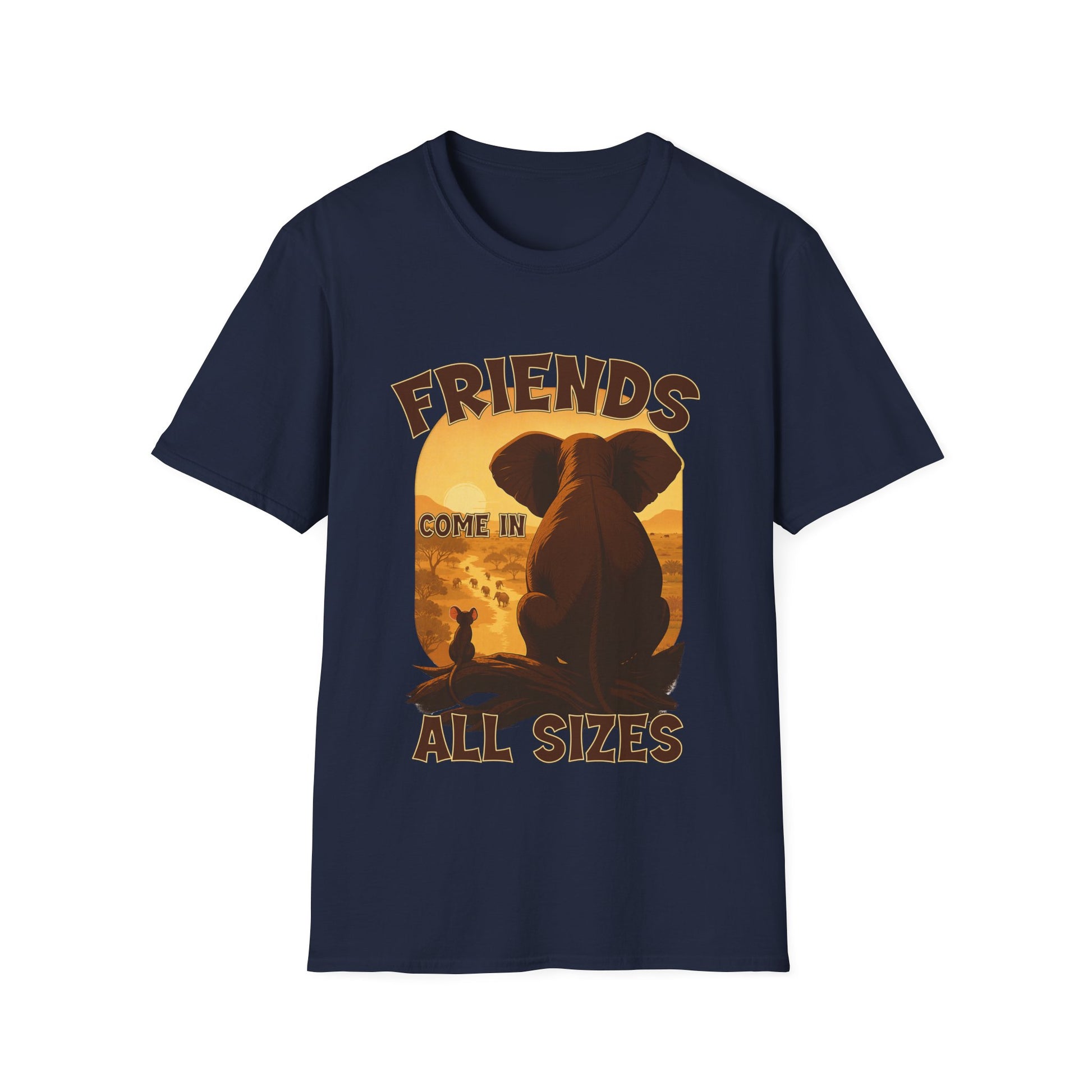 A tiny mouse and a mighty elephant share the same sunset—proof that real friendship isn’t about size but heart. Warm sepia light, sweeping savannah and a cozy log perch turn this scene into a feel-good mini story you can wear.