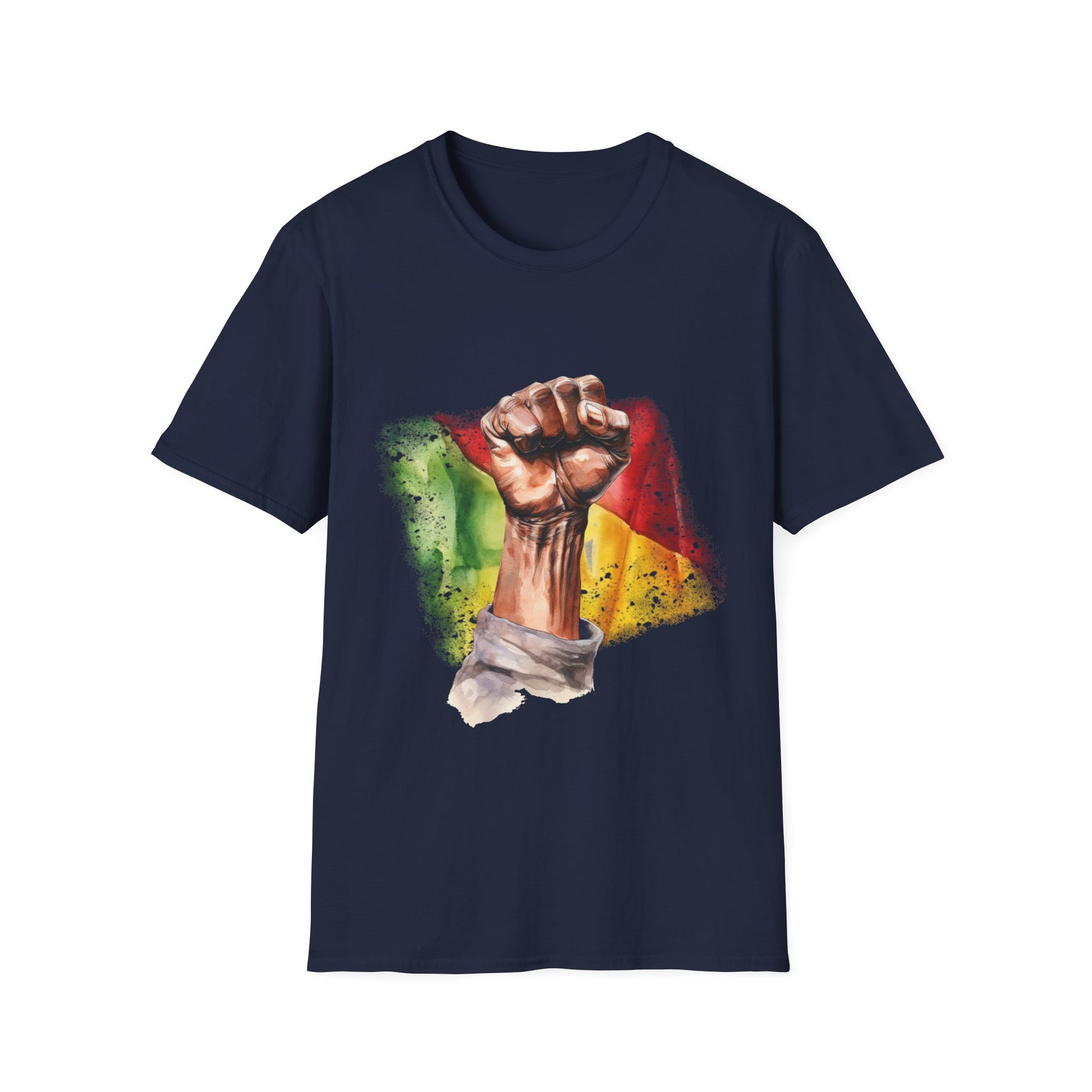 A watercolor fist cuts through red, gold and green—soft edges, fierce intent. This piece carries the sound of chants, the warmth of community and the promise of a future made together.