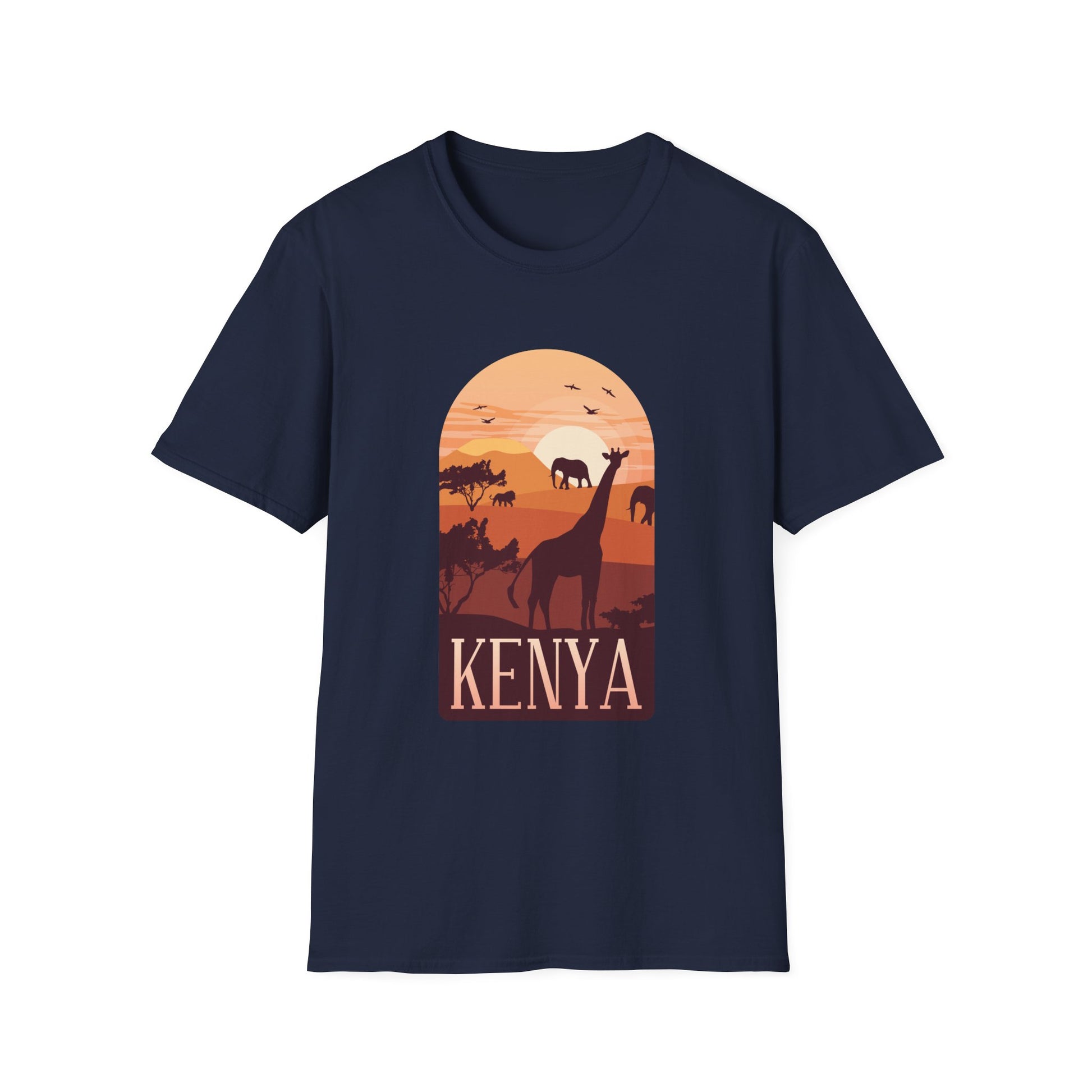 Golden hills, a setting sun and long-legged silhouettes: a giraffe stands watch while elephants wander the savannah. This warm, poster-style badge bottles the magic of a Kenyan evening—quiet skies, wild horizons, unforgettable calm.